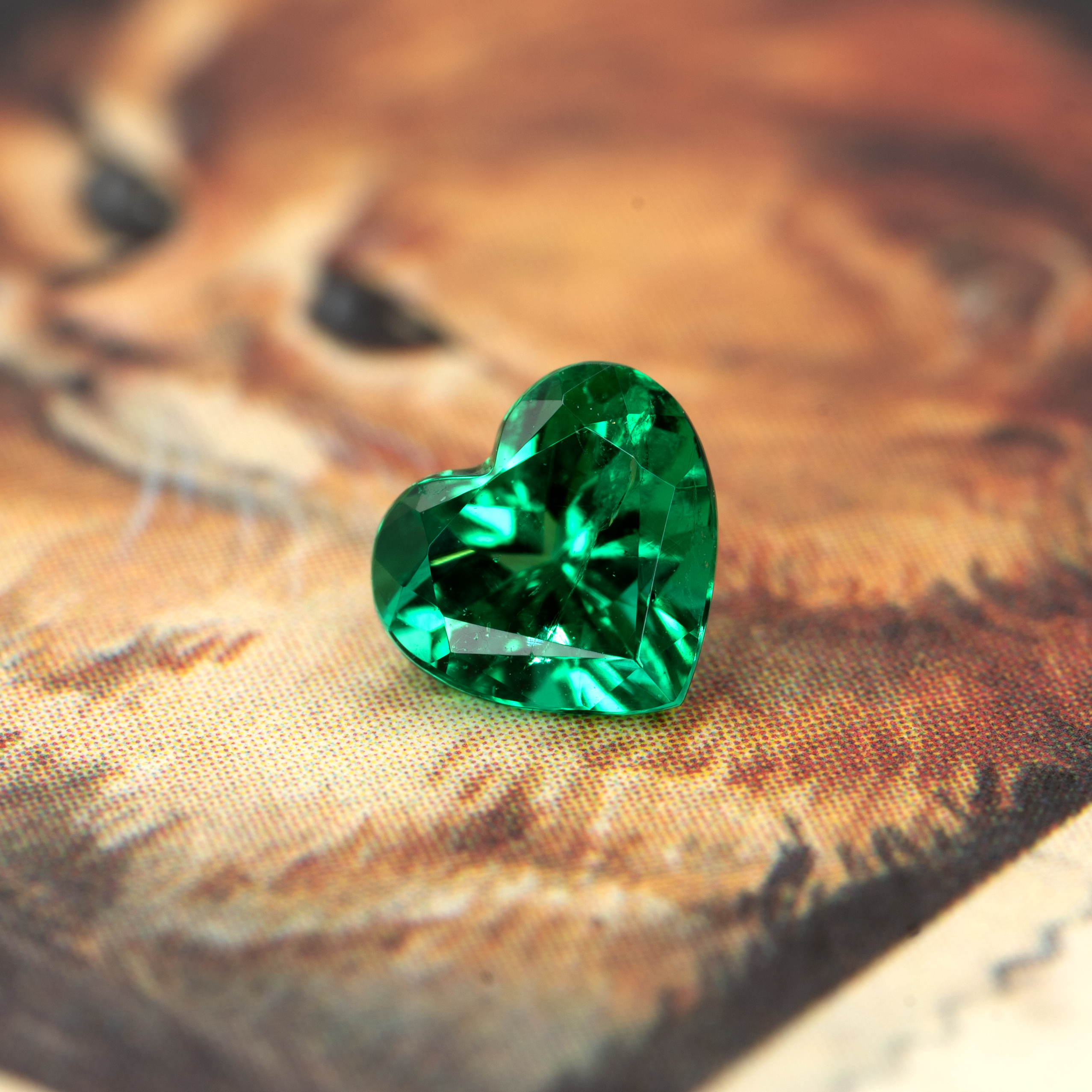 ハートシェイプのプロポーションもバランスがとても良く、総合的に見て極めて高品質なエメラルドです。