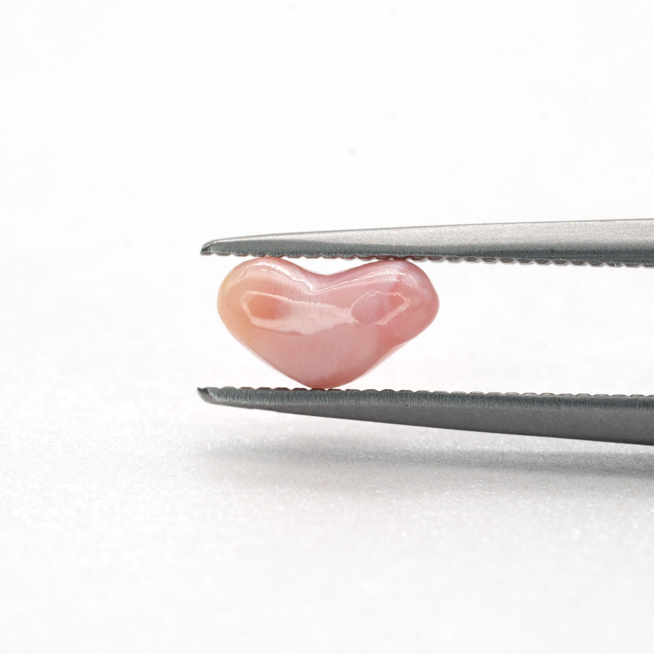 こちらの珍しいハートシェイプのコンクパールは一粒だけ譲っていただけたもの、少し歪なハートは天然の証です。