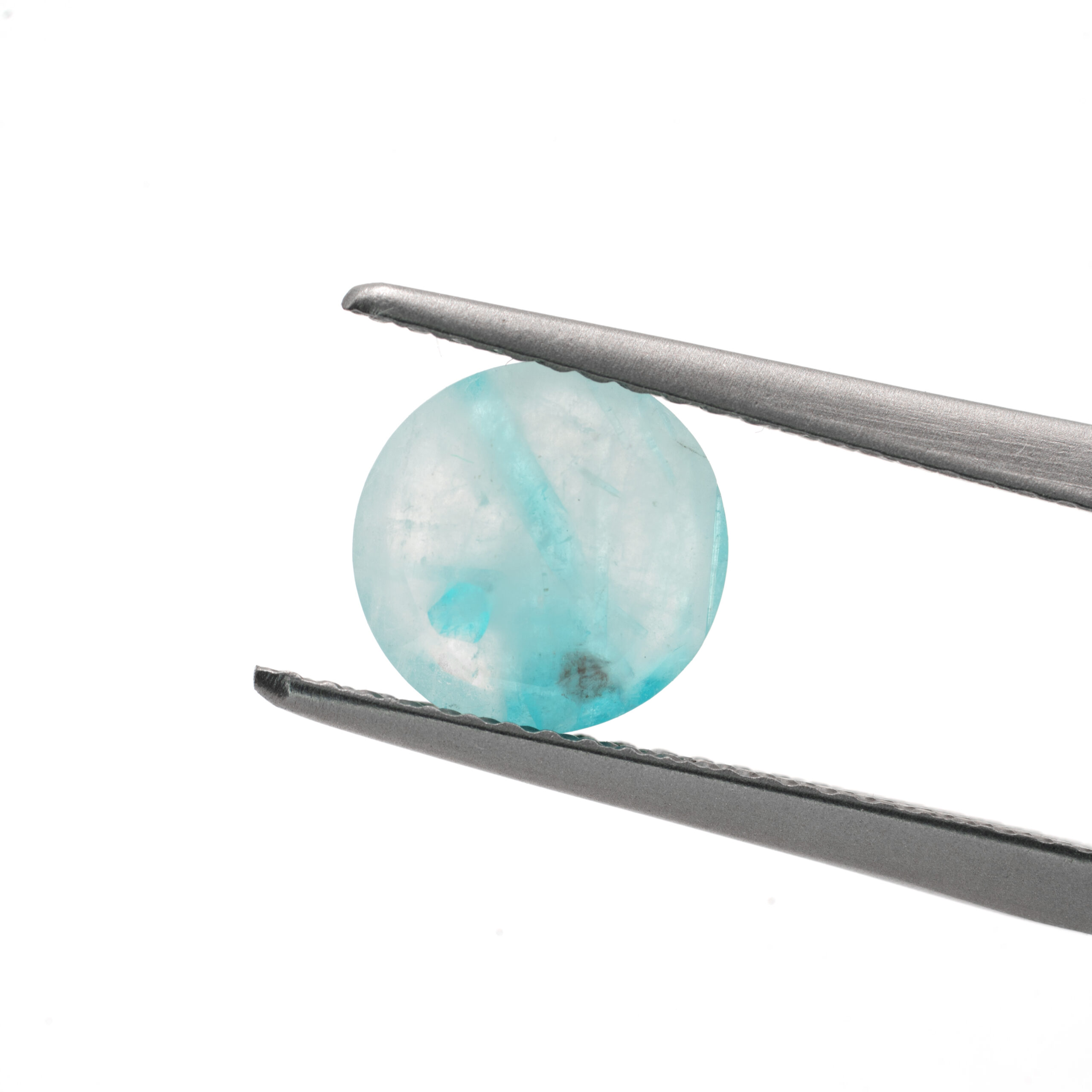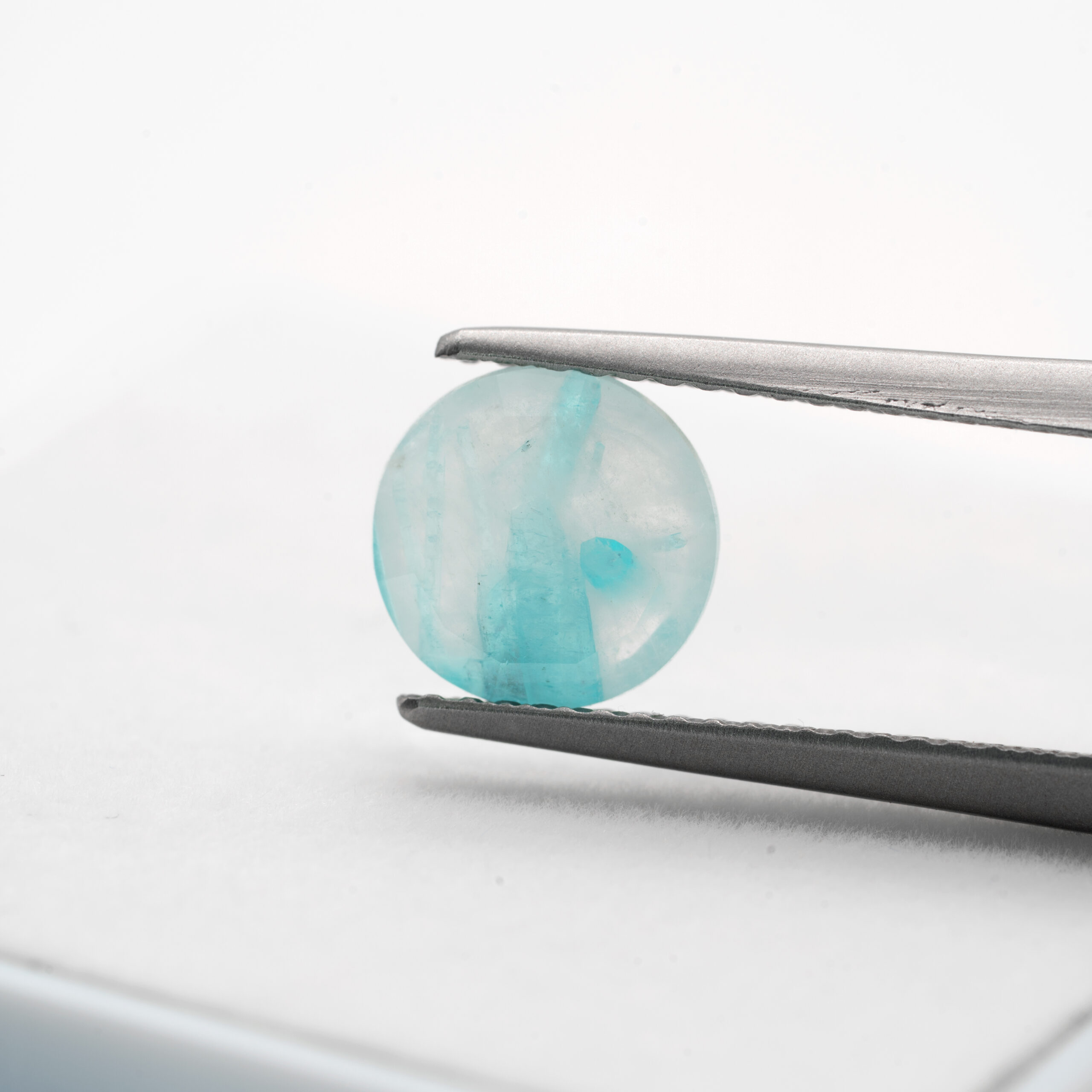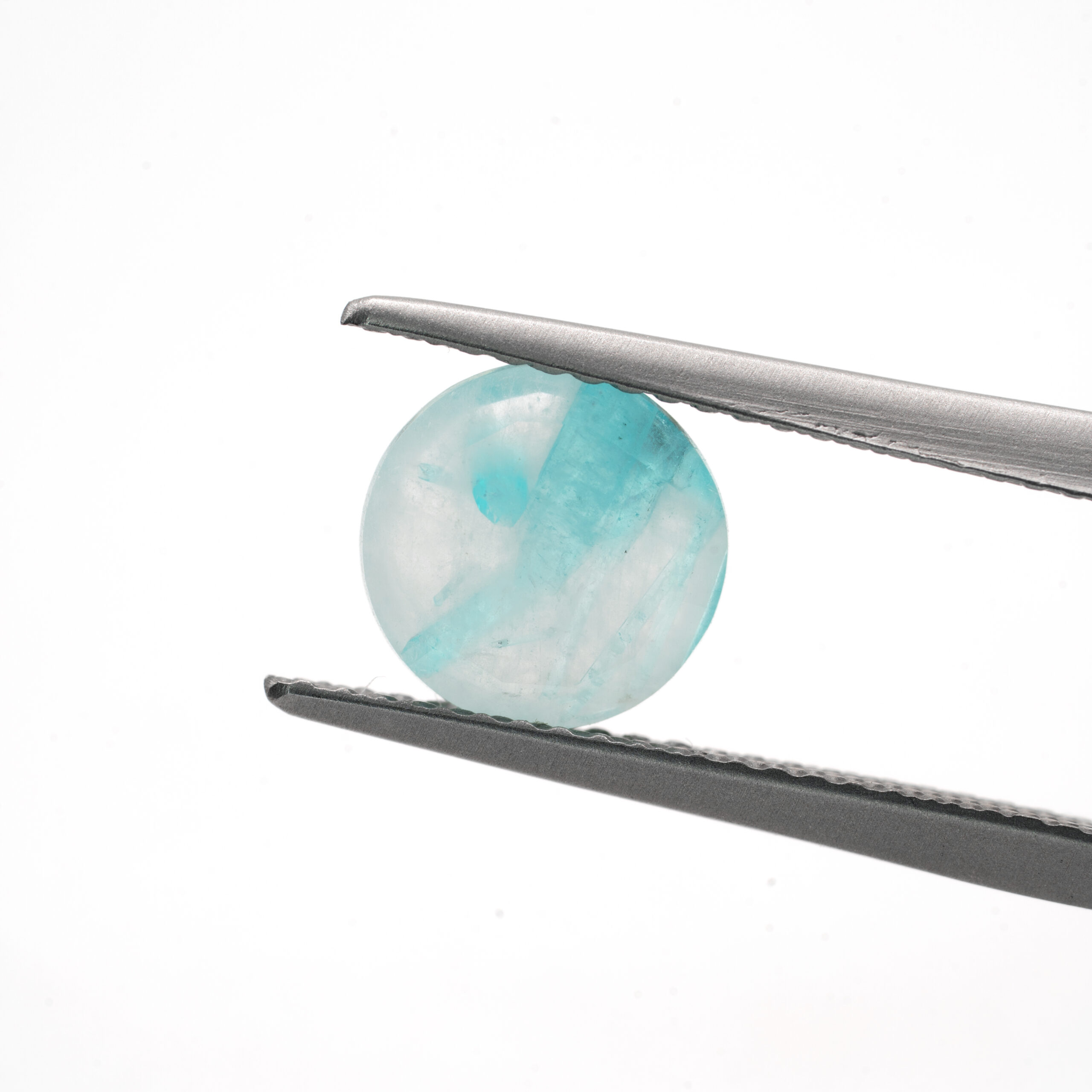 透明感がある箇所と、乳白色を噛む箇所に、パライバトルマリンらしいライトブルーの彩りが織り込まれています。