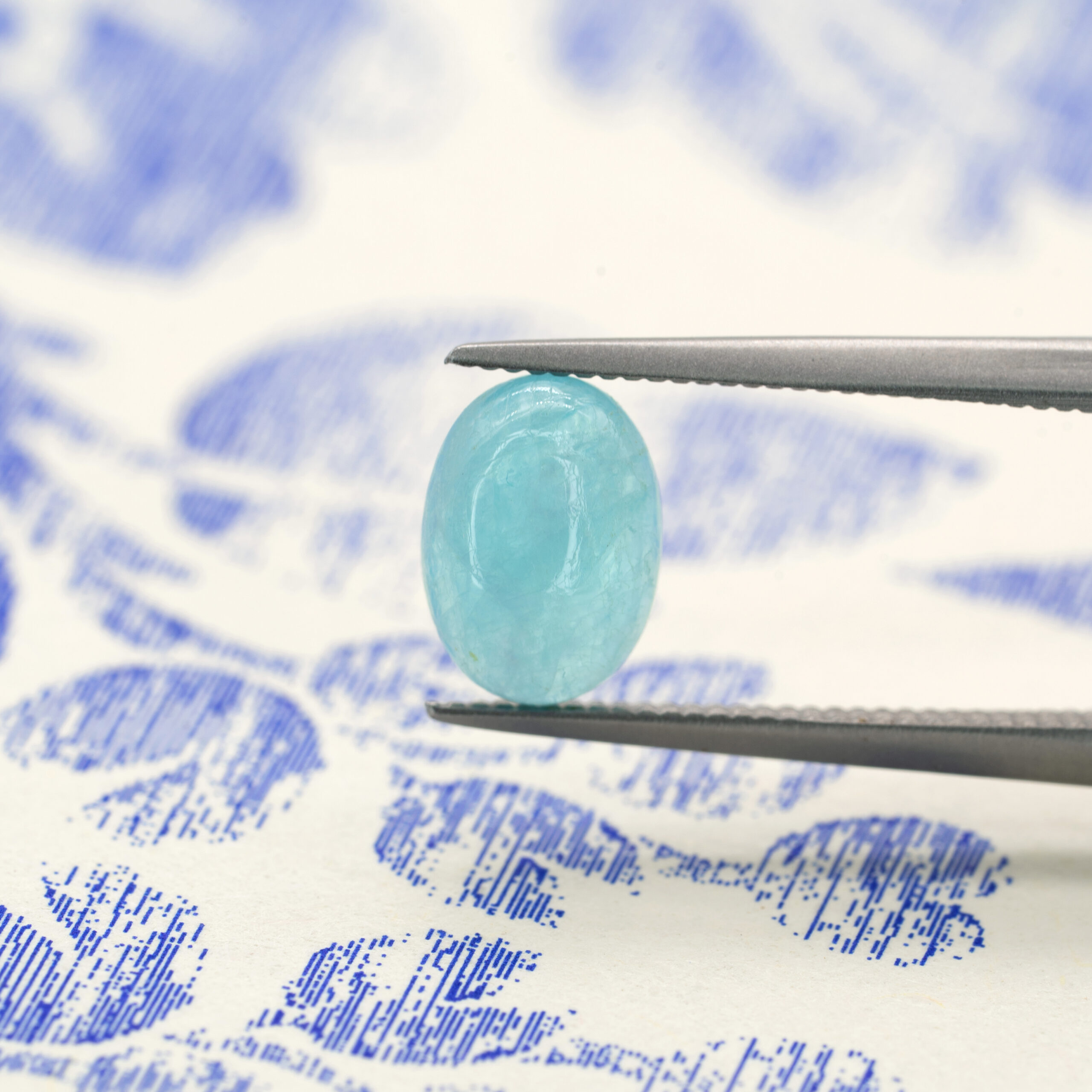 淡いライトブルーとつるんとしたカボションカットが可愛いパライバトルマリン