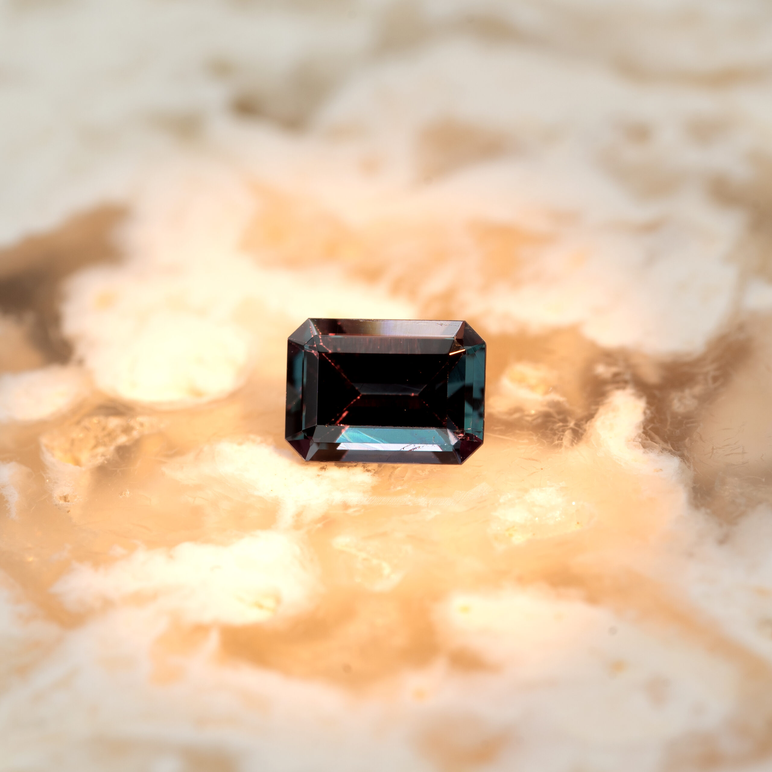 エメラルドカットに施された高品質なブラジル産のアレキサンドライト