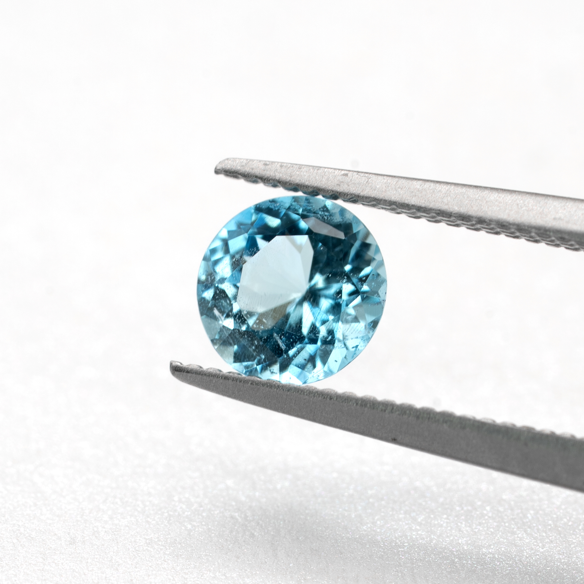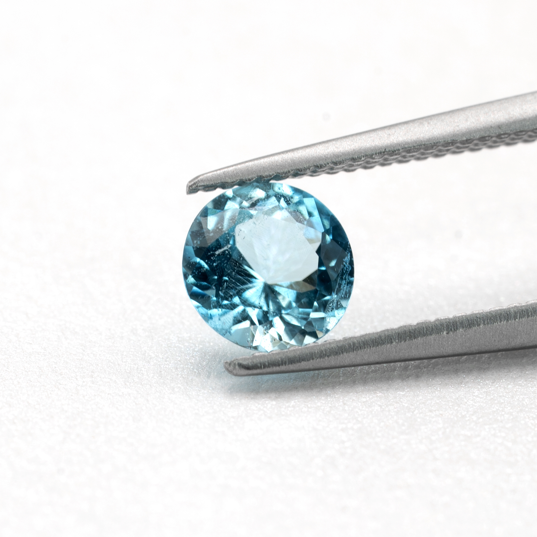 こちらは透明度が高く、希少なラウンドカットで、綺麗な青空の色のものを探して仕入れました。