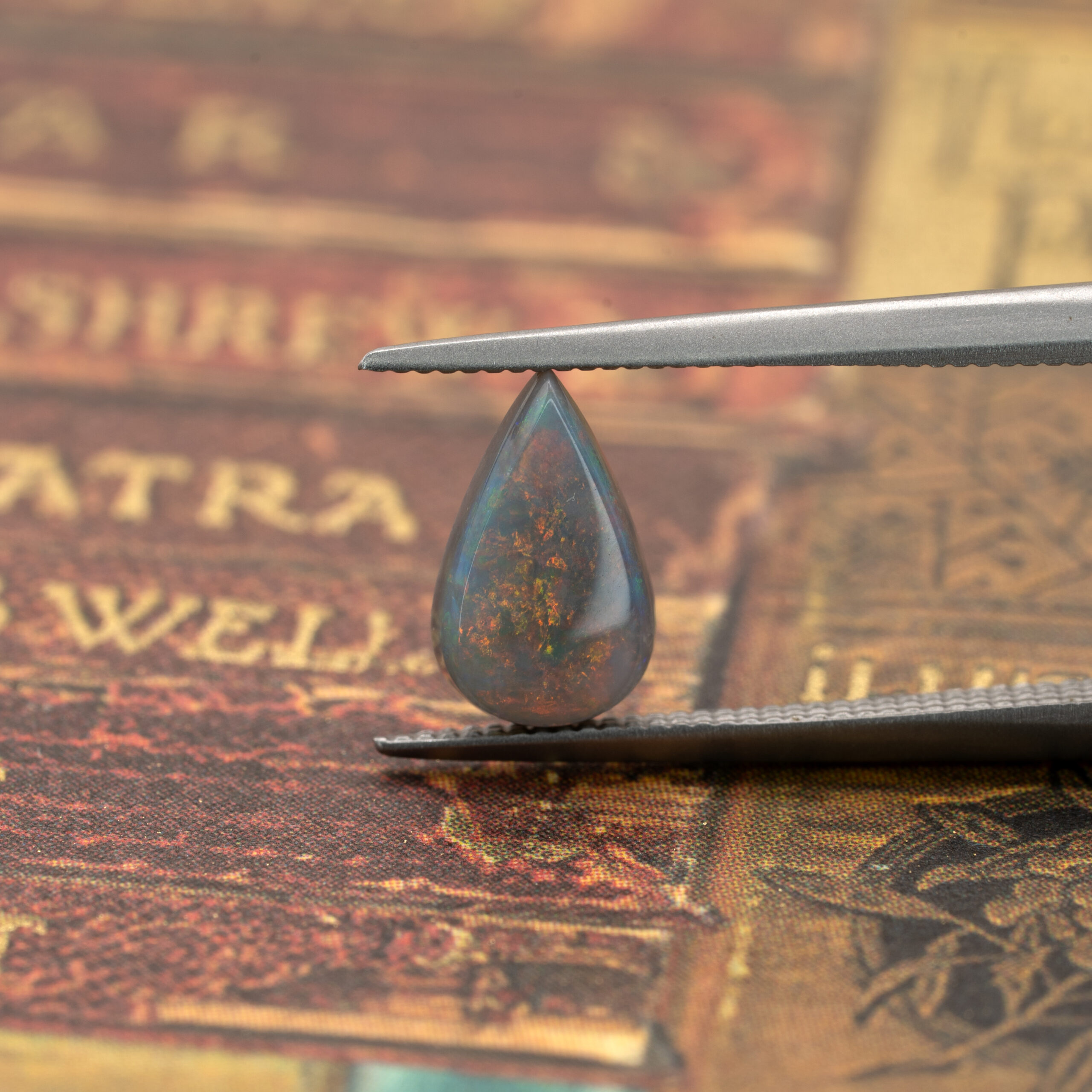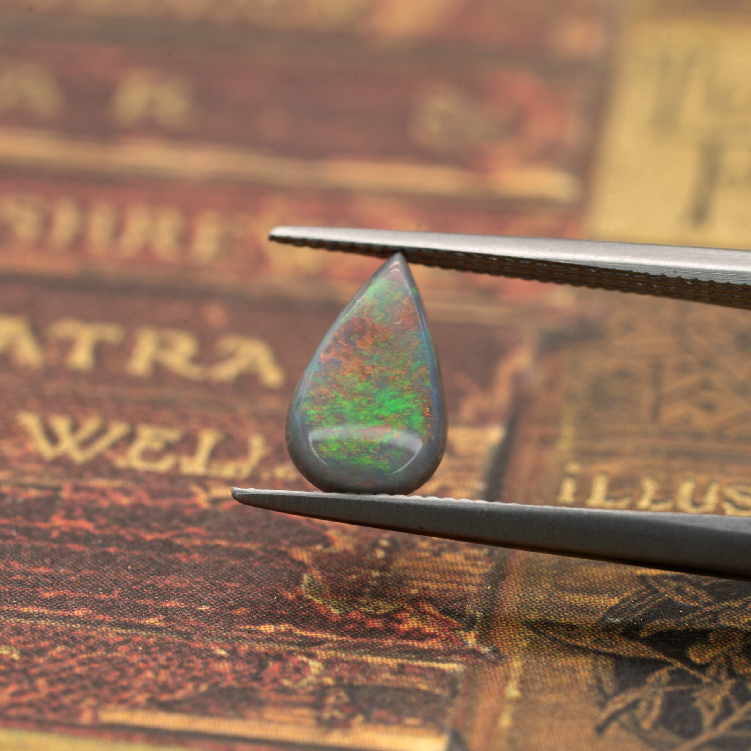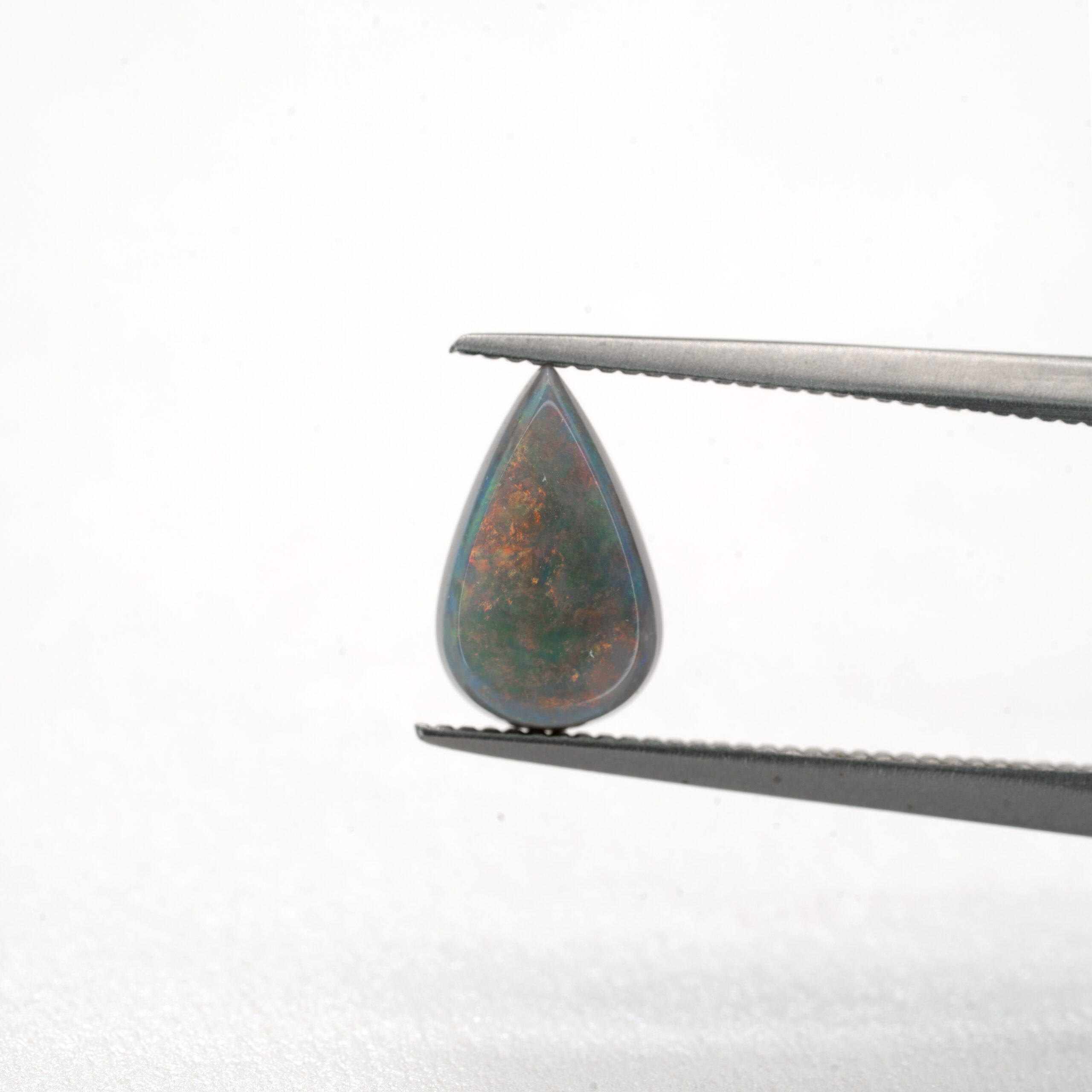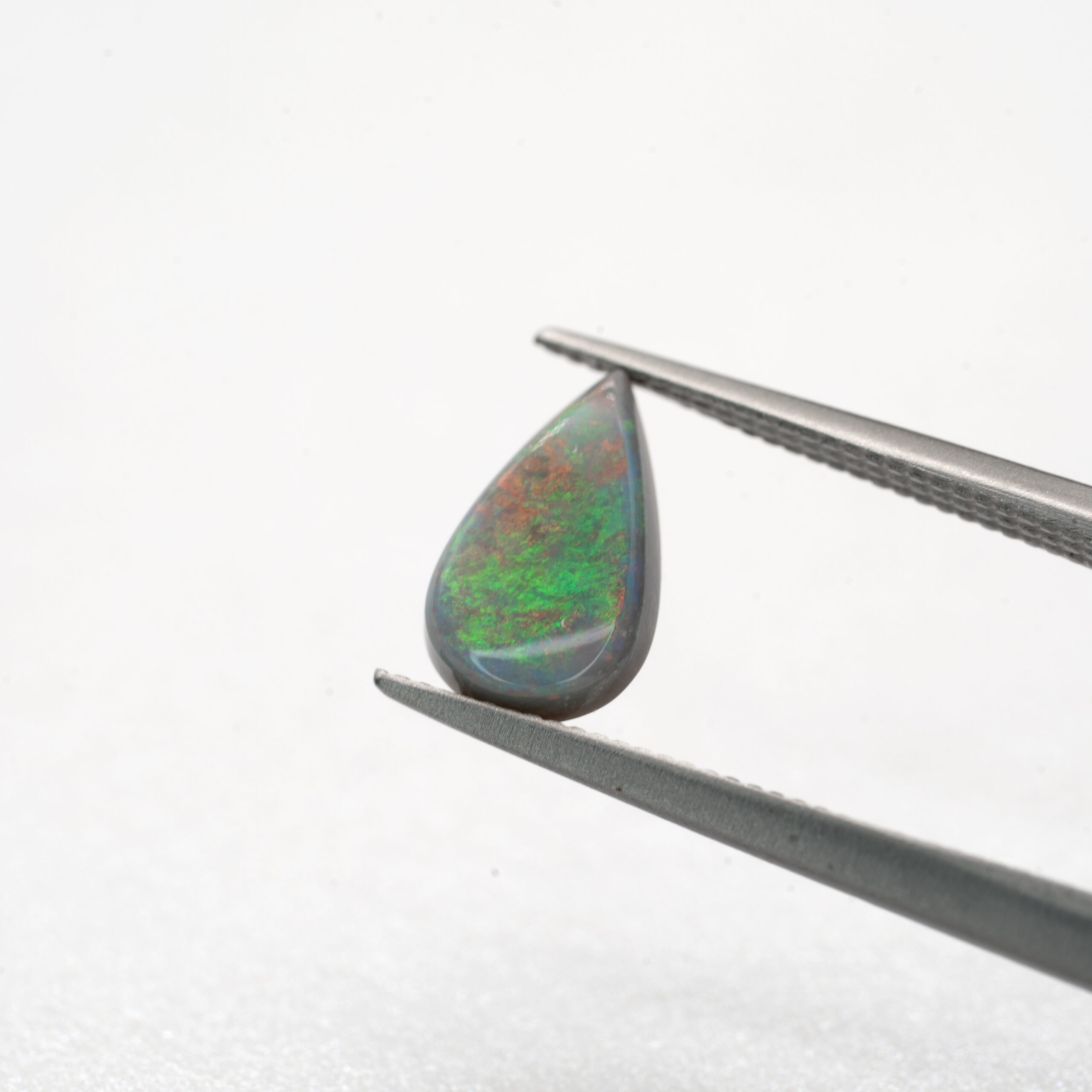 こちらのブラックオパールは、角度に依って赤主体と緑主体の遊色効果が切り替わります。