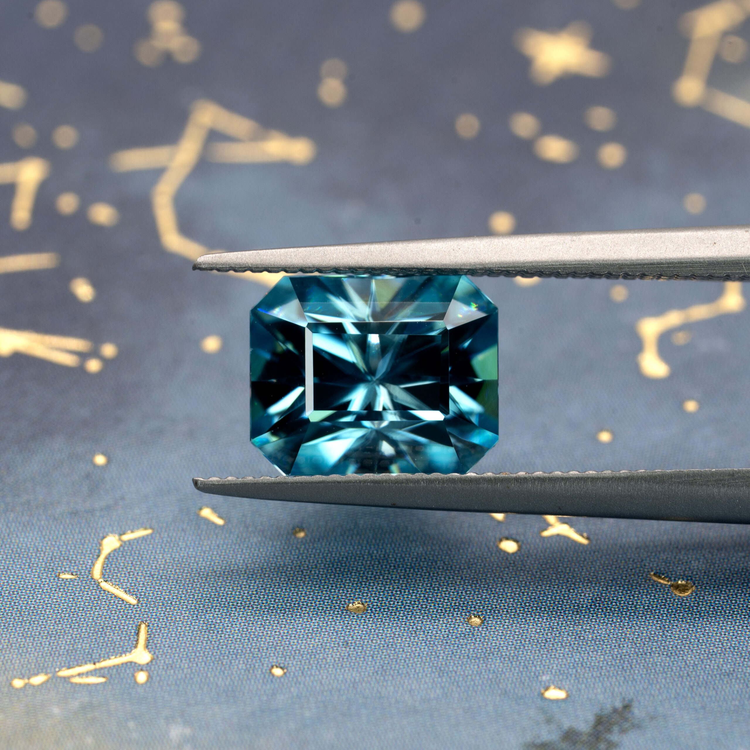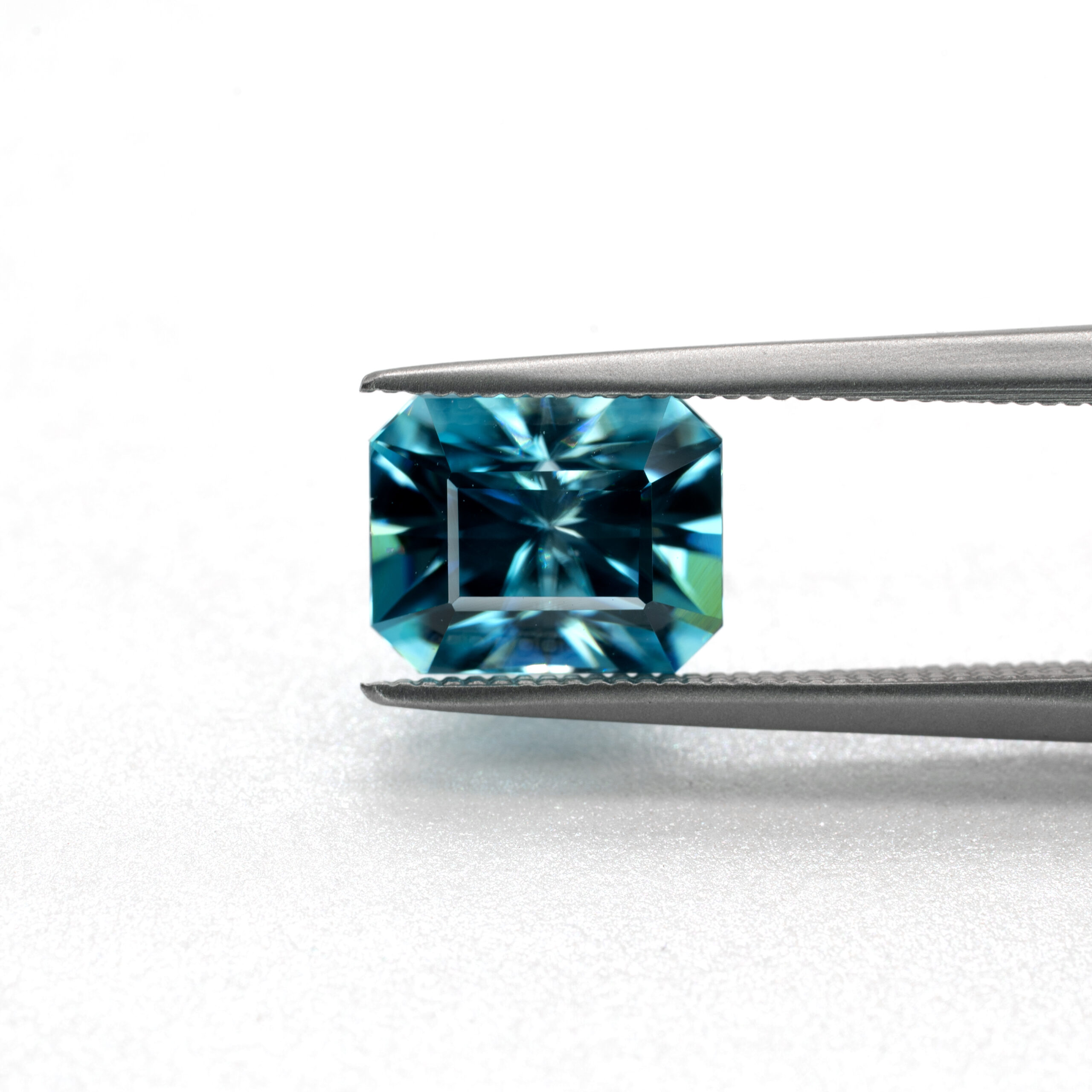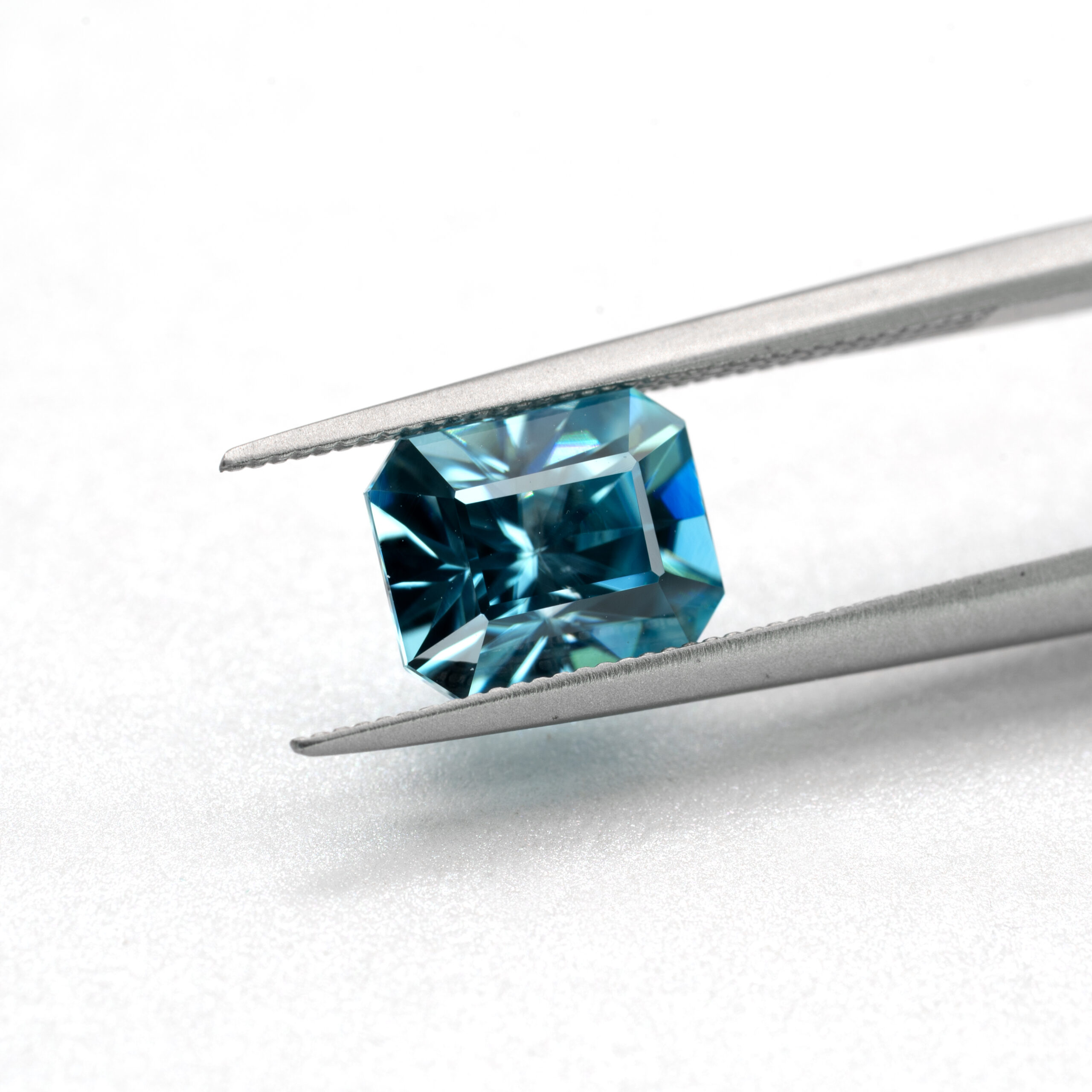 ラタナキリブルーの色彩とジルコンの特徴でもある強いファイアとダブリングがしっかりと感じられるよう計算しています。