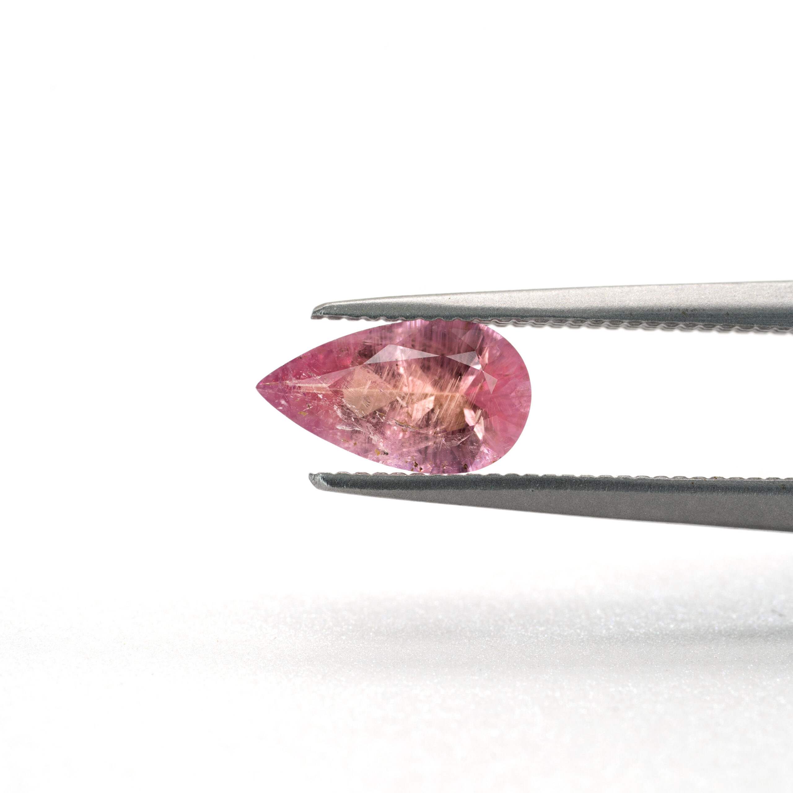 多色性もあり、角度によってオレンジピンクやパープルピンクなど、色味が変わって見える特徴もあります。