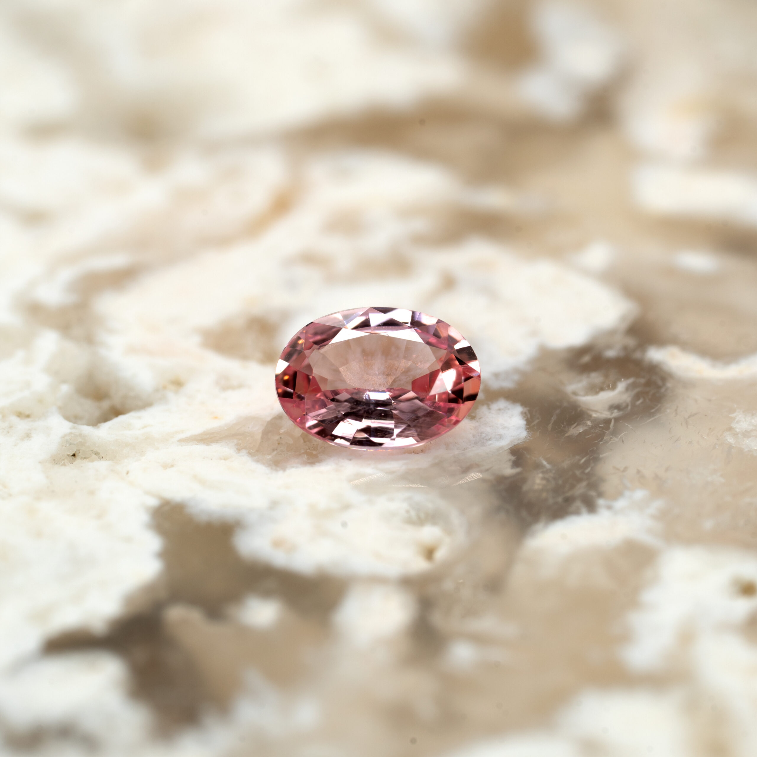 オレンジとピンクが絶妙に溶けあったお手本の様な色味のパパラチアサファイアです。