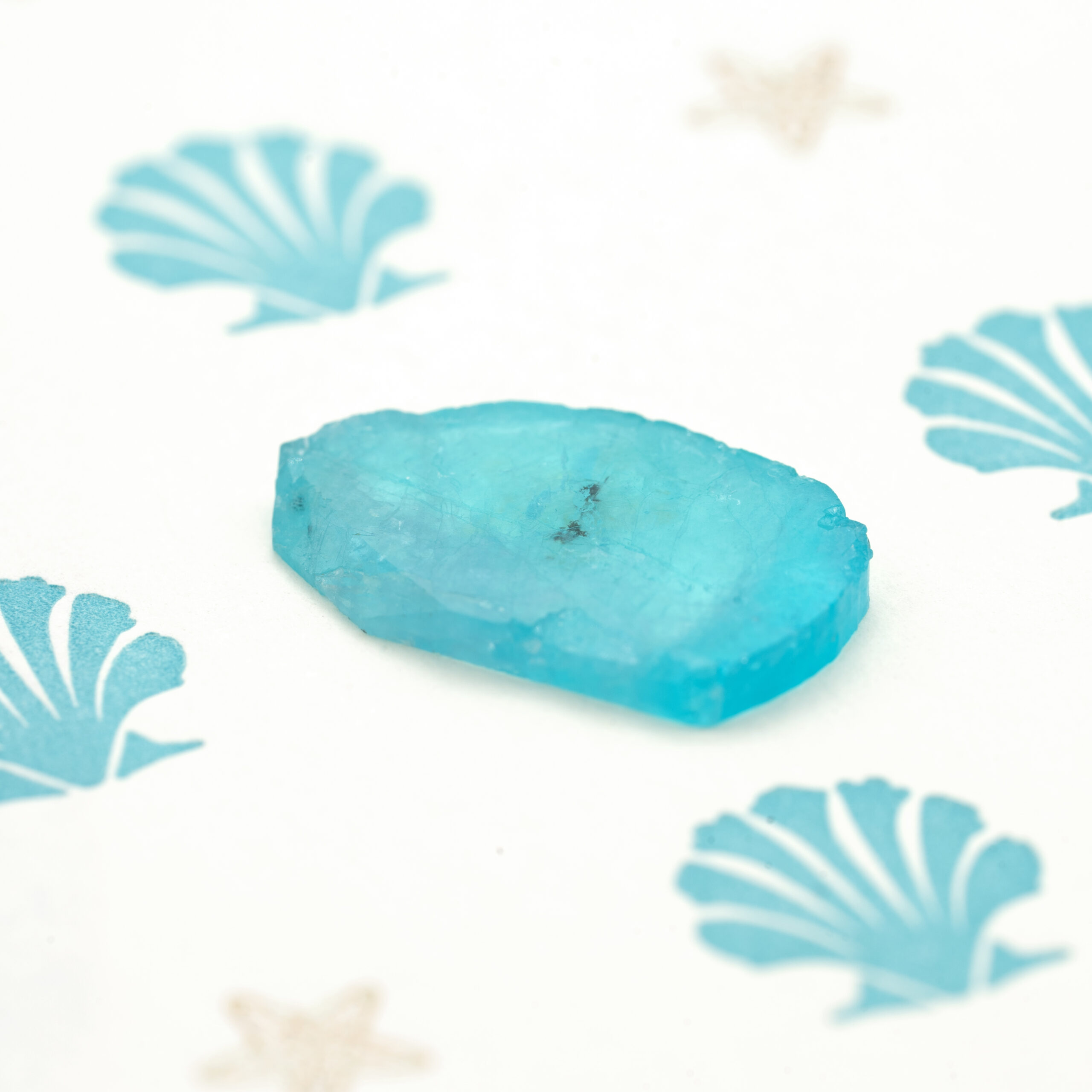 個性的なカットと味のあるクラックとインクルージョン、一目でパライバと分かるネオンブルー